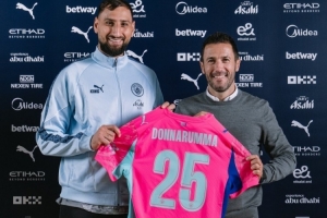 体育资讯9月12日讯 曼城官方更新社媒动态,晒出新援门将多纳鲁马的亮相照片。