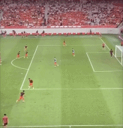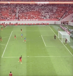 第七次:左路传中,中路左脚凌空抽射,再次飞向角旗区。