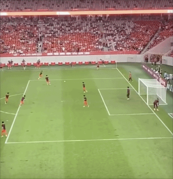 根据现场观众晒出的视频,在本场比赛开始之前,主教练安东尼奥安排了射门训练:一部分球员负责传中,另一部分球员负责在禁区内射门,没有任何防守干扰,可以说每一次都是直面门将的单刀球。