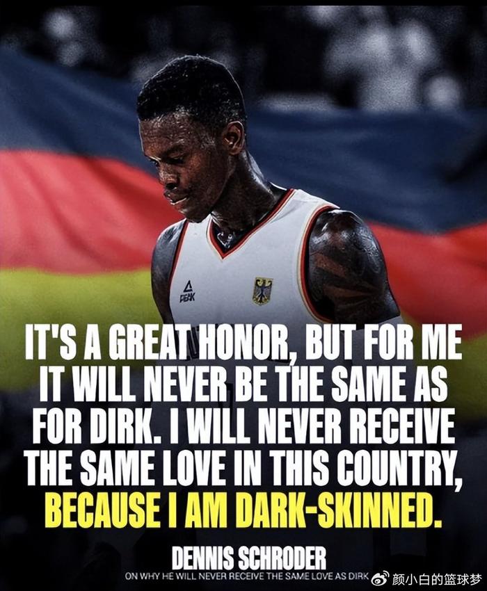 就在欧洲杯之前,施罗德谈到自己带领德国队拿到世界杯冠军且获得MVP,他这样说道:这是一个巨大的荣誉,但我永远无法获得跟德克同样的尊重,就因为我的肤色是黑色。言犹在耳令人十分难过,施罗德为了德国男篮已经付出一切。