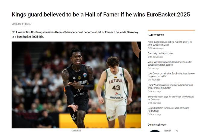 德国男篮逆转斯洛文尼亚男篮晋级2025年欧洲杯四强,这场比赛德国的全场最佳是给了丹尼斯-施罗德,这位身高1.85米的黑人小后卫是德国男篮的领袖,在德克-诺维茨基退役后他一人扛起了风雨飘摇的德国队。